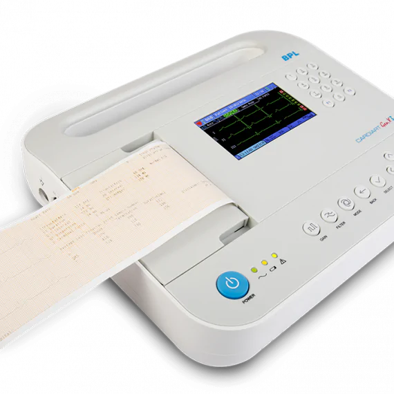 It comes with a 4.3″ full-color TFT display that shows all 12 leads in real time.